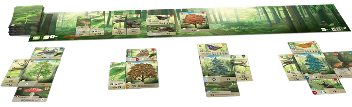 Korten representerar antingen träd eller invånare (flora och fauna). Dweller-korten är uppdelade så att de placeras ovanför, under eller vid sidan av trädet för att återspegla deras naturliga livsmiljö. För att spela kort måste du betala kostnaden genom att slänga uppåtvända kort till gläntan – där även dina motspelare kan dra dem.