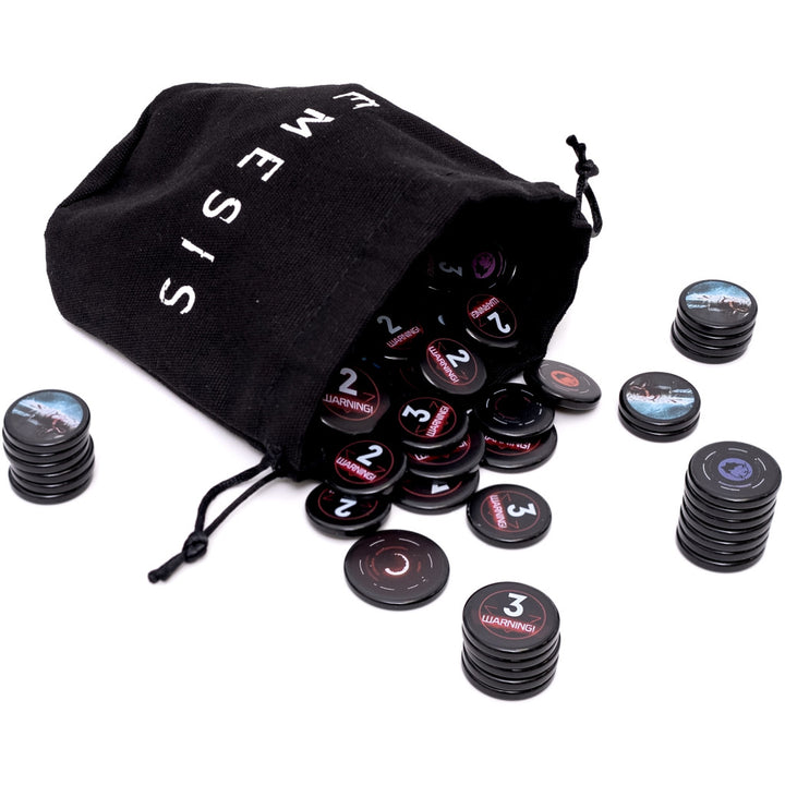 Ge ditt Nemesis-spel en uppgradering med denna exklusiva Acrylic Tokens Box. Paketet innehåller slitstarka akrylmarkörer som kan användas som ersättning för de medföljande kartongbrickorna i grundspelet och expansionerna.