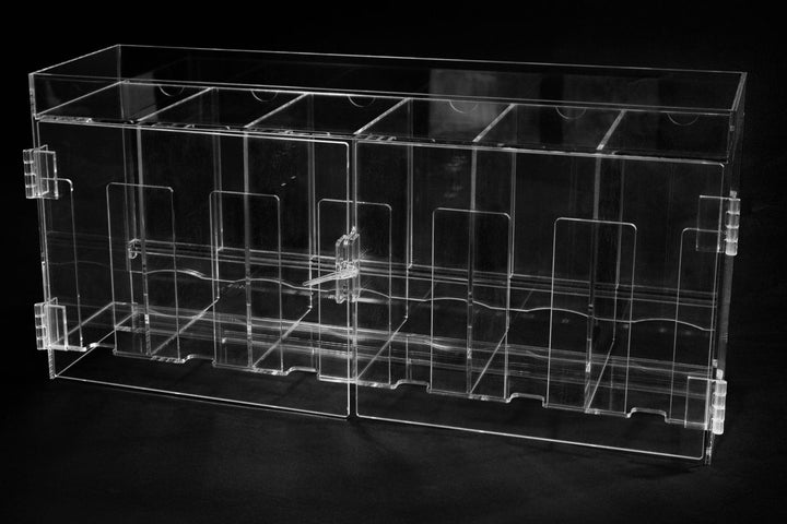 Den smarta och staplingsbara designen gör denna dispenser idealisk för användning i butiker, privata samlingar eller streaminguppsättningar. Tillverkad i kristallklar akryl som både är hållbar och elegant, framhäver den varje booster pack på ett stilfullt sätt. Med låsbara luckor och ett säkert lock skyddas dina värdefulla kort mot damm, skador och oönskad åtkomst.